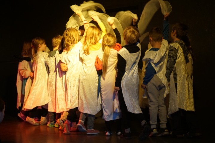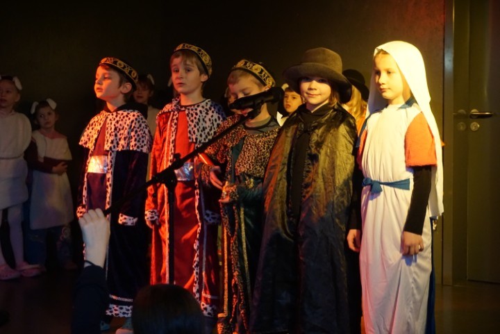 Mit unserem traditionellen Adventssingen eröffneten wir unseren letzten Schultag vor den Weihnachtsferien. Die Kinder der Eisvogelklasse lasen die Weihnachtsgeschichte aus der Bibel vor und die Schulgemeinschaft sang gemeinsam mit vielen anwesenden Eltern die bekannten christlichen Adventslieder. Frau Hupfer, Frau Nilius und Frau Kopperschmidt begleiteten uns wieder instrumental, unterstützt durch Konstatin Günther am Saxofon. Eine besondere Würdigung erhielten vier Schulengel an diesem Morgen. Frau Wolf bedankte sich bei unseren Fsj-lern, bei Frau Zimmermann und Herrn Mannheimer, die still und bescheiden die Schulgemeinschaft unterstützten. Ein besonderes Highlight war die wunderbare Aufführung des Krippenspiels der drei ersten Klassen. Frau Nilius sorgte wieder einmal für den perfekten musikalischen Rahmen.