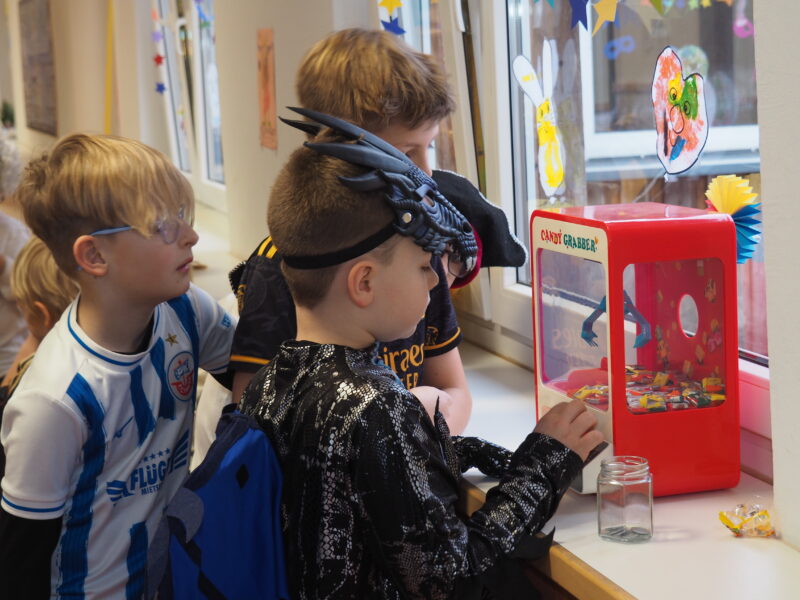 Helau & Alaaf - waren bei unserer Faschingssause nicht zu hören, dafür aber ganz viel Kinderlachen, Musik in allen Varianten, das Klappern von Dosen und das Knallen von Konfettikanonen. Es war ein großer Spaß beim Tanzen, Schminken und Quizzen. Kleine Spiele um Süßigkeiten weckten den Ehrgeiz und füllten neben vielen mitgebrachten Leckereien die Bäuche. Ein großer Dank gilt Sylvester für die tatkräftige Unterstützung und natürlich allen Eltern, die mit den vielen liebevoll gestalteten Leckereien ein unvergessliches Buffet geschaffen haben.