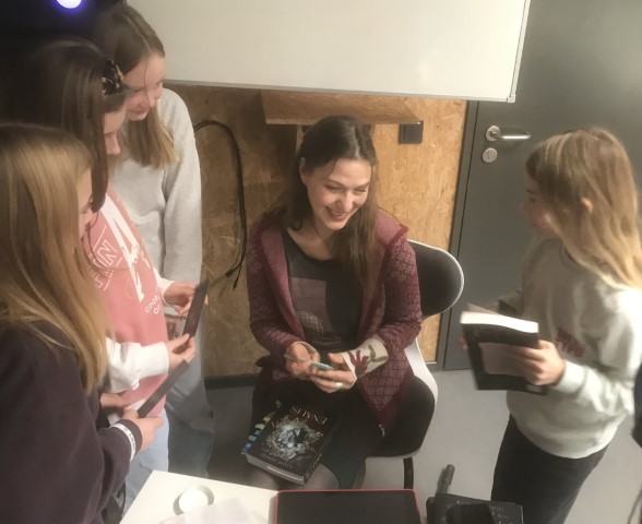 Eher selten hat man als Kind die Gelegenheit, den Autoren oder die Autorin eines Buches auch im echten Leben zu treffen. Im Rahmen des Deutschunterrichts konnten die Schülerinnen und Schüler der Orientierungsstufe am 15.12.2025 die Wismarer Schriftstellerin Juliane Deinert direkt im Klassenzimmer hautnah bei einer Lesung erleben. Geheimnisvoll klingt der Titel ihres Buches "Enalis – Das Flüstern der Buchseiten". Es ist ein spannendes Fantasy-Abenteuer, das im Juni 2025 als erster von zwei geplanten Teilen erschienen ist. Für die Kinder war es eine besondere Erfahrung, direkt mit einer Autorin über ihren Roman, dessen Charaktere und ihre Inspiration sprechen zu dürfen. Protagonist des Buches ist Sascha, der mit Hilfe eines rätselhaften Buches nach seinem verschwundenen Vater sucht. Die Kinder hörten gespannt zu und stellten viele Fragen zur Fantasiewelt, die Juliane Deinert erschaffen hat. Als studierte Historikerin interessiert die Schriftstellerin außerdem die NS-Zeit, die sie in ihrem neuesten Jugendroman – Die grüne Geige – thematisiert hat. Das Buch wird 2026 erscheinen und die Kinder sind bereits gespannt auf die nächste Lesung.