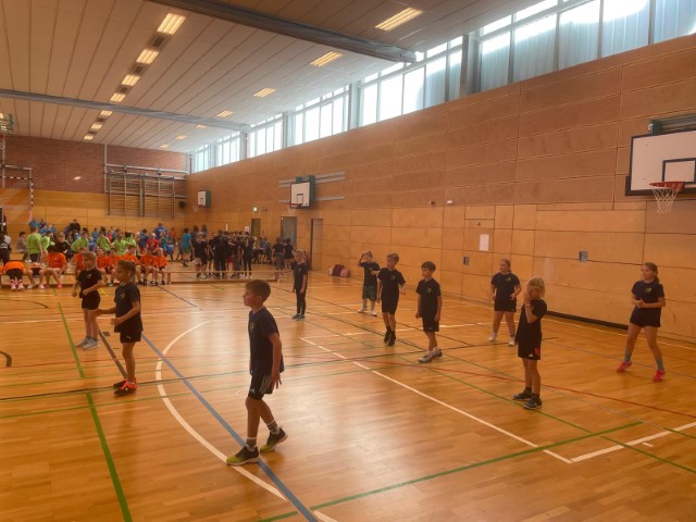 Am 4. November 2025 fand in der Sporthalle der Tarnowschule das alljährliche Turnier „Ball über die Schnur“ der Grundschulen statt. Hier traten insgesamt acht Schulen aus den Klassenstufen 3 und 4 gegeneinander an. Die Atmosphäre in der Halle war unglaublich lebhaft, mit vielen begeisterten Schülern und Schülerinnen, die ihre Teams lautstark anfeuerten. Die Schüler der Klassenstufe 3 zeigten eine großartige Leistung und belegten den 3. Platz. Dies ist ein bemerkenswerter Erfolg. Die Klassenstufe 4 hatte es in diesem Jahr etwas schwerer und konnte leider keine Platzierung erreichen. Trotz der herausfordernden Spiele gaben die Schüler*innen ihr Bestes und zeigten großen Einsatz. Insgesamt war das Turnier ein Erfolg, der nicht nur den sportlichen Wettkampf förderte, sondern auch den Zusammenhalt und die Freude am Spiel. Wir freuen uns schon auf die nächsten Wettkämpfe, denn wie man so schön sagt: „Nach dem Wettkampf ist vor dem Wettkampf.“