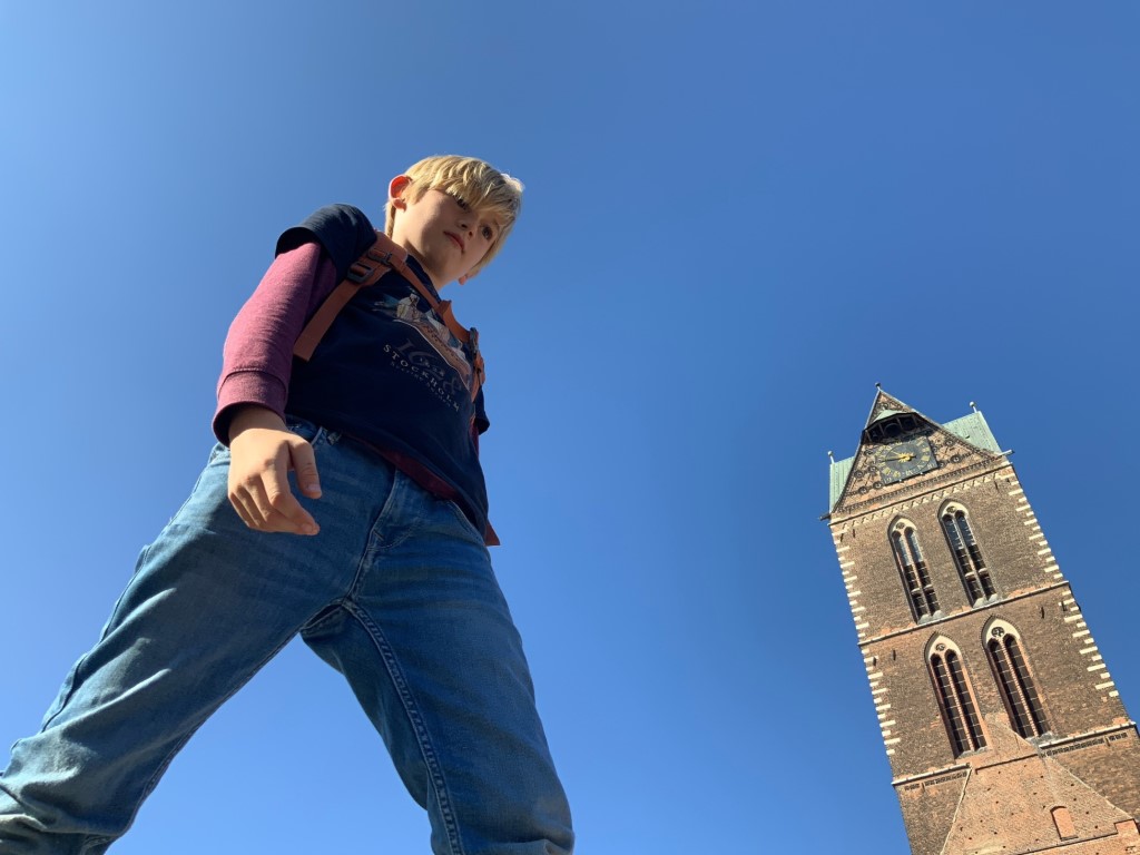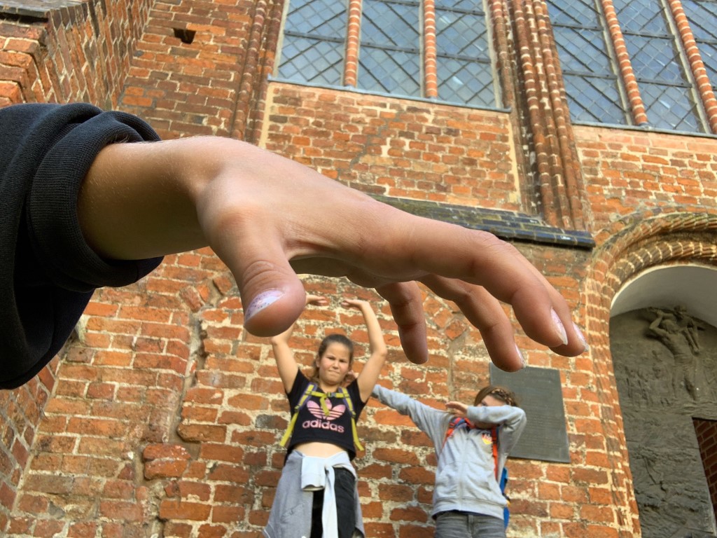 Die Kraniche durchliefen in Gruppen mit Tablets die Wismarer Innenstadt und nutzten dafür die App Actionbound. Die Tablets wurden vom Filmbüro MV gestellt, inklusive App mit Stadtplan und Aufgaben für die einzelnen Stationen. Fragen zur Stadt sollten beantwortet werden, kleine Filme wurden an Sehenswürdigkeiten gedreht und mit Perspektiven experimentiert. Der Spaßfaktor war hoch. Ein toller Wandertag!