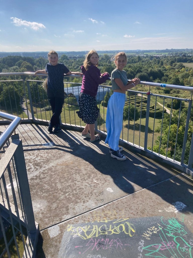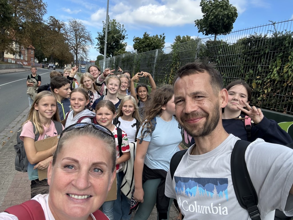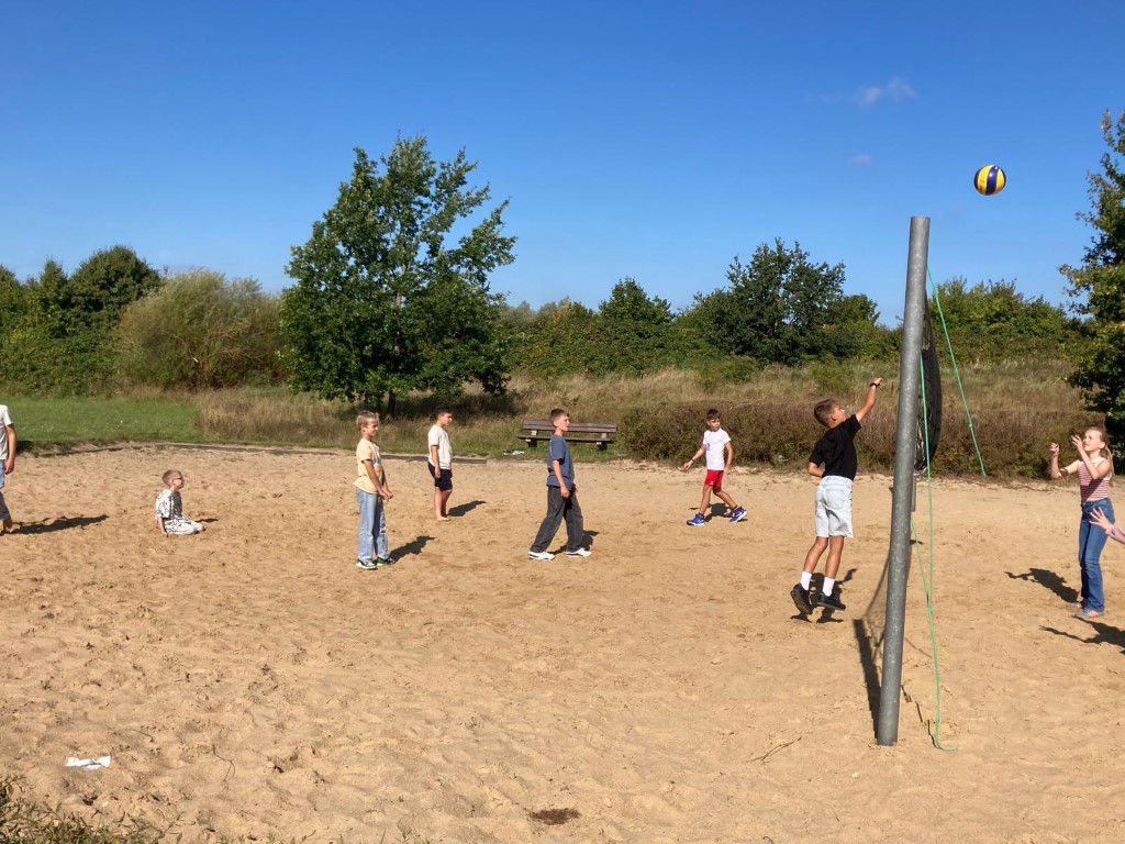 Den schönen Spätsommertag genossen die Eisvögel bei ihrer Wanderung zum Bürgerpark. Mit Picknick und Outdoorspielen im Gepäck ging der Weg quer durch Wismar bis zum Volleyballfeld im Park. Dort verbrachte die Klasse eine entspannte Zeit mit Ballspielen, Kubb und Frisbee. Wer keine Höhenangst hatte, kletterte zum Schluss noch einmal auf den Aussichtsturm und genoss die Aussicht.