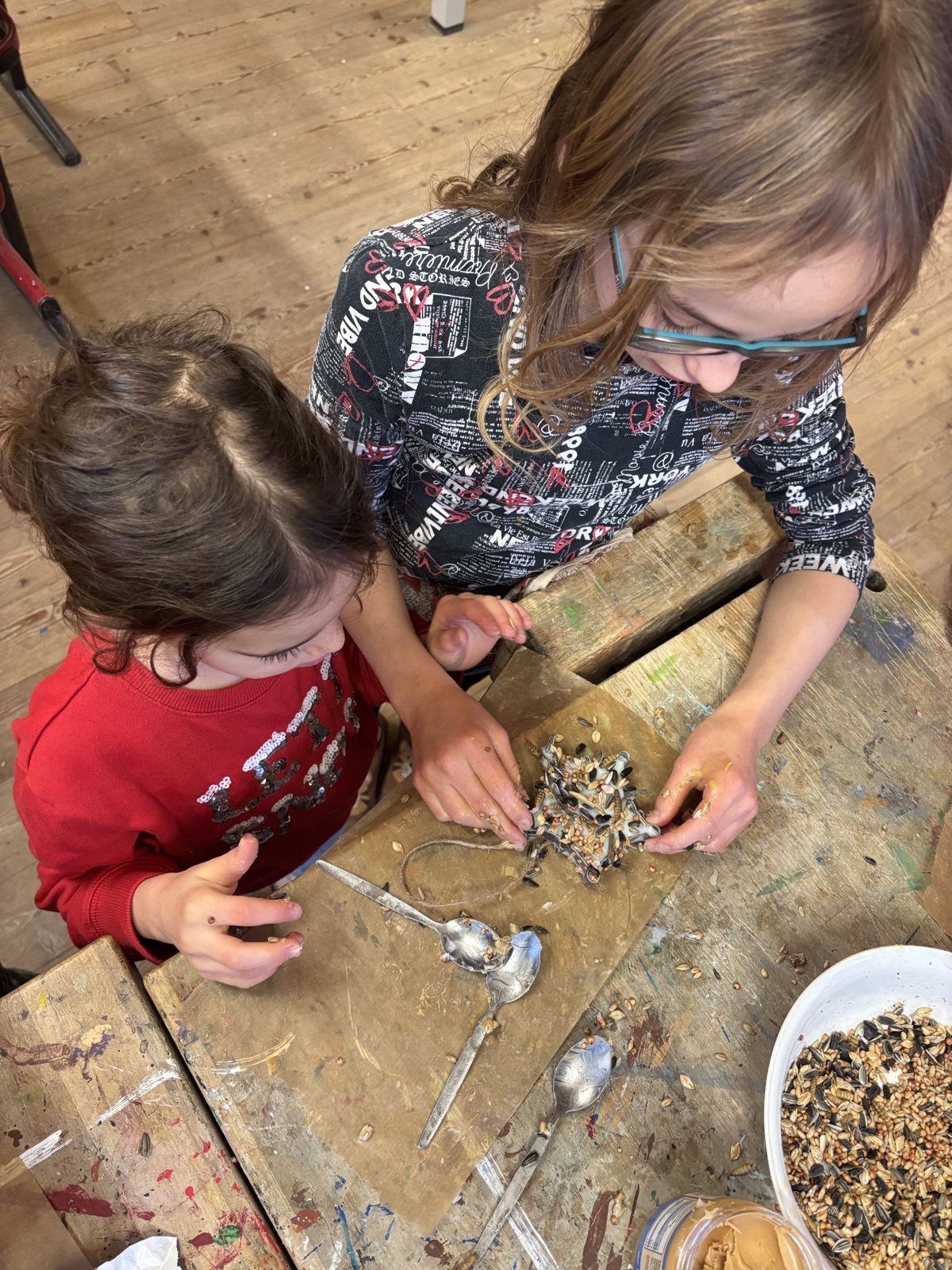 Neben dem gemeinsamen Backen von Pancakes für unsere Bäuche, haben wir beim Herstellen von Futter auch an Hund, Katz’ und Vogel gedacht.