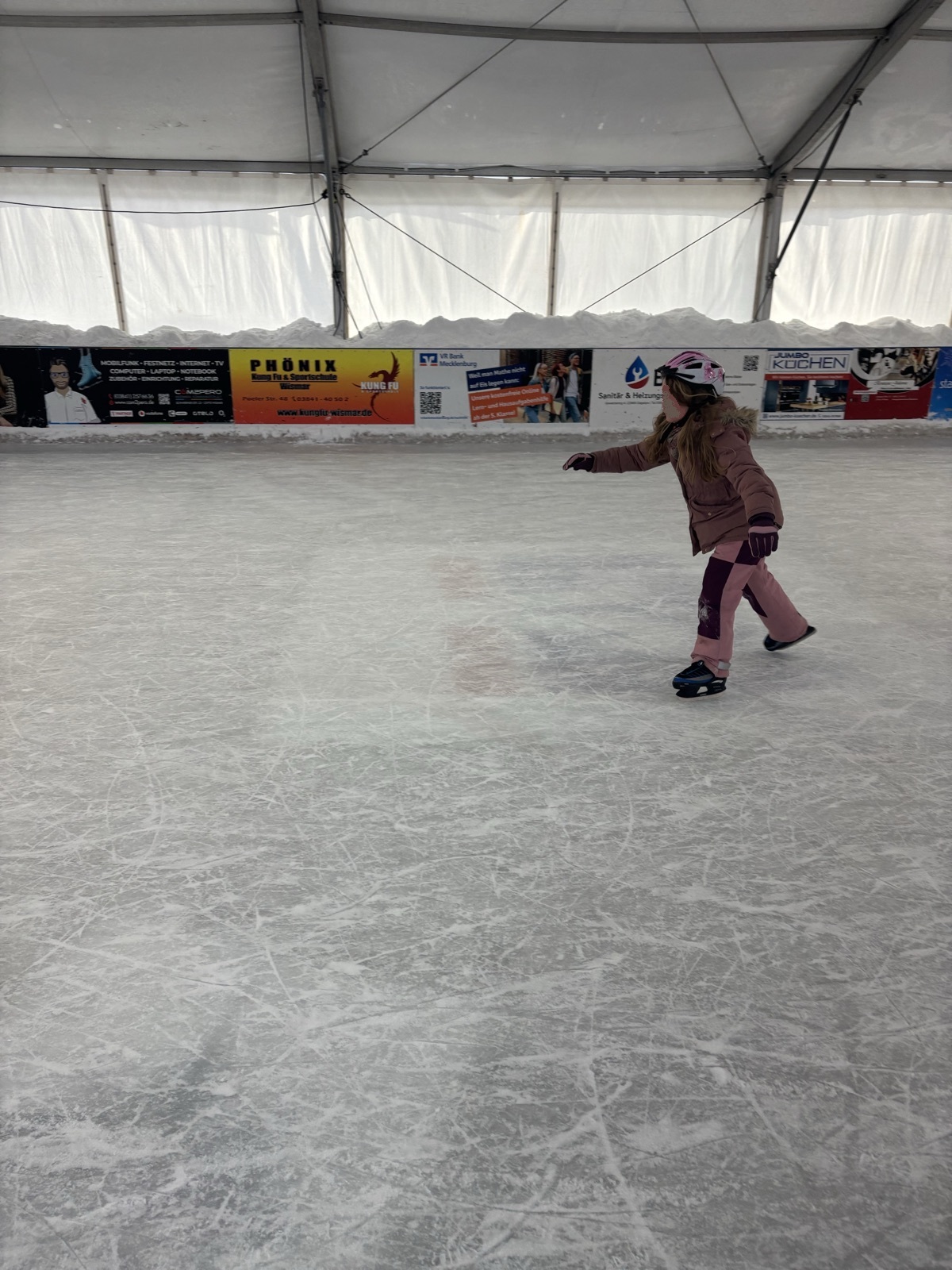 Sportlich wurde es aber auch in diesen Ferien - auf der Eislaufbahn am Hafen konnten die Kinder ihr Geschick auf Schlittschuhen mit oder ohne Robbe unter Beweis stellen.
